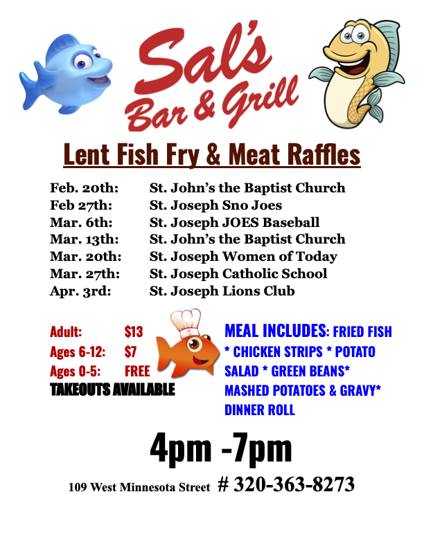 • Sal's Bar & Grill 109 West Minnesota Street Saint Joseph, MN, 56374 United States (map)
